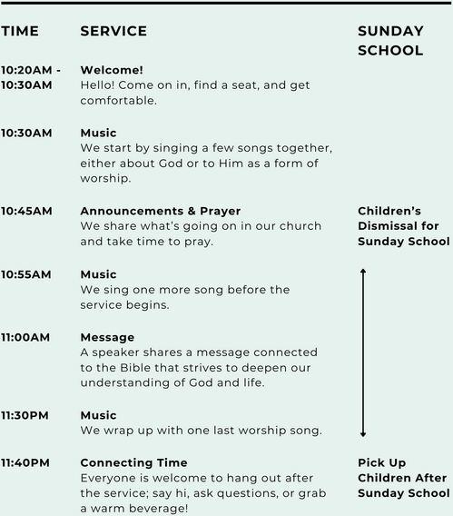 If it’s your first time here, there is a registration form and check in process you can fill out for your child(ren) before the service. If you would prefer to keep your child with you during the service, that’s completely fine too! Whatever makes you feel most comfortable.